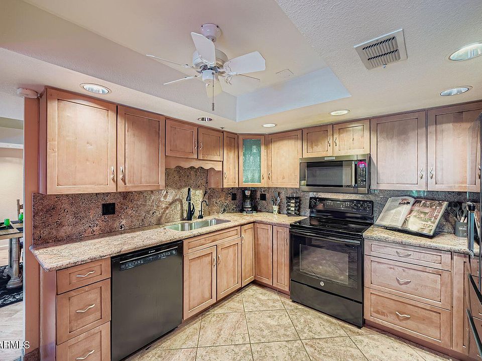 Rare 3-bed/3-bath condo offers resort-style living. With its guard-gated community, you'll find world-class dining, exciting new restaurants, and Scottsdale Fashion Square just moments away. An open layout with both formal and casual dining areas, along with a private double balcony showcasing unique views rarely found within the community. The updated kitchen is designed for both style and function, complete with granite countertops, stainless steel appliances, and a breakfast nook for everyday dining. Additional features Dual paned windows throughout, in-unit laundry, 2 parking spaces, and 2 storage units. See the exceptional amenities, including three heated pools, a private 9-hole golf course, tennis courts, fitness center, library, art studio and an active calendar of community event