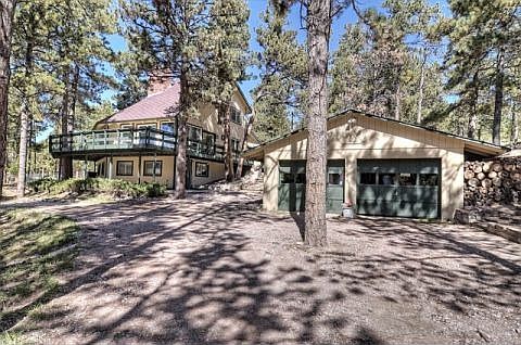 Come home to this RARE find in the Black Forest! This all modern/farmhouse design doesn't come around that often. With historic touches such as Pine Cone Ranch barn wood from the Black Forest and custom welded steel stairs on main level. High end appliances in the gourmet kitchen, remodeled bathrooms, new master suite, and HUGE deck to enjoy summer evenings. This lot is 2.5 acres of tranquility and peace. Lofts are in two bedrooms that make a great reading nook or storage. The owners have taken time, impeccable care and thought of this home to update and highlight the unique features. An extra room off kitchen could be office or flex space. Radiant heated floors throughout main level of home! Restoration Hardware lighting stays! A new septic was just installed prior to listing and lot also includes a circular drive way, chicken coop and two car garage. A whole house fan cools the home. Buyer to verify square footage well information. Basement could also be a mother in law quarters.