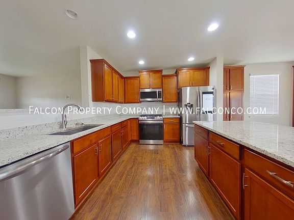 *Please schedule showings on our website. All showings are scheduled online. There you may also view virtual tours, property details, up to date information or apply. You may also view the list of our minimum tenant requirements!* Welcome home to this sensational house in the desirable neighborhood of Banning Lewis! Step into the stylish and modern kitchen with a gas stove, stainless steel appliances, and granite countertops, making meal preparation a breeze. The breakfast bar is perfect for casual dining with space for up to four people! Enjoy the convenience of a 2-car garage and plenty of storage throughout the home. Relax in the formal living room or unwind in the primary en suite. Step outside to the incredible fenced-in back yard with a charming pergola, ideal for outdoor entertaining. Take advantage of the amazing community amenities including the Vista Water Park, Briarwood neighborhood park, trails, playgrounds and a pickleball court! Easy access to Powers Blvd. for restaurants, shopping, entertainment and more! Don't miss out on this incredible opportunity to call this house your new home! *Maintenance pending *Clean pending - Tons of natural light - Washer dryer hook-ups - AC included Up to 1 dog permitted, no weight limit. No Pit Bulls, Rottweilers, American Bulldogs, Bullmastiffs, Doberman Pinchers, Presa Canarios, Japanese Tosas, Cane Corsos, and Rhodesian Ridgebacks permitted. No Cats. Lease term: Initial term 10-11 months, depending on lease start date. Renewal terms are typically 12 months but may vary. Smoking is not permitted indoors. BEFORE YOU APPLY - Read Falcon Property Company's website carefully to understand our application process, fees and disclosures. Falcon Property Company is the manager for this property. Falcon Property Company does not receive applications, or communicate through any third party website. If you are seeing this listing elsewhere, for the most up to date information including a virtual tour, please see our website. Per HB23-1099, a prospective tenant has the right to provide to the landlord a portable tenant screening report, as defined in section 38-12-902(2.5), Colorado Revised Statutes; and if a prospective tenant provides the landlord with a portable tenant screening report, the landlord is prohibited from charging the prospective tenant a rental application fee; or charging the prospective tenant a fee for the landlord to access or use the portable tenant screening report. Falcon Property Company is a dedicated fair housing provider and will assist all persons without regard to race, color, creed, sex, religion, national origin, familial status, marital status, handicap, ancestry, or any other protected class as defined by state and federal fair housing laws. Price and availability subject to change. Utilities: Electric: Resident Responsibility Colorado Springs Utilities Gas: Resident Responsibility Colorado Springs Utilities Trash: Resident Responsibility Company Of Choice Wastewater: Resident Responsibility Colorado Springs Utilities Water: Resident Responsibility Colorado Springs Utilities