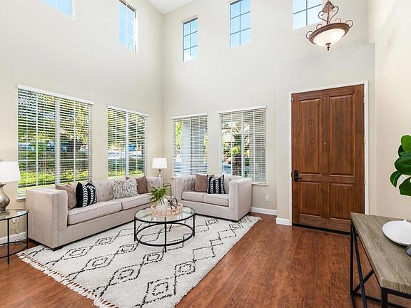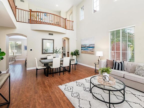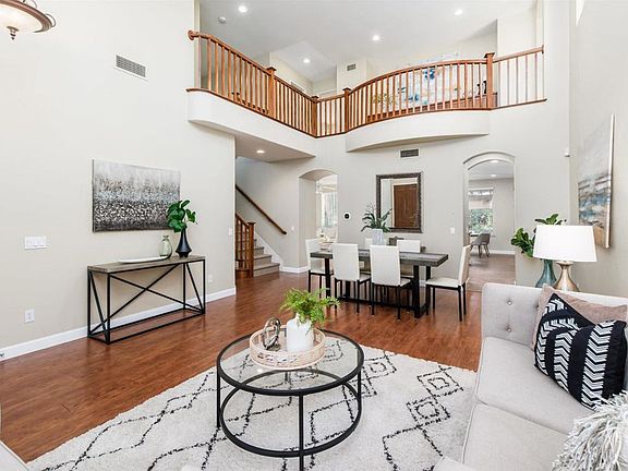 Nestled in the coveted resort style community of La Costa Valley, this pristine executive home seamlessly blends Mediterranean elegance with timeless design. The refined open interior features a main-level guest BR and a versatile bonus room with brand-new vinyl floors, an ideal home office or add a closet for an optional 5th BR. Curb appeal abounds with lush landscaping and an inviting walkway leading to the front porch. Step inside to dramatic two-story ceilings, hardwood floors & multiple double-stacked windows that flood the living & formal dining rooms with natural light, creating perfect spaces for relaxation & formal gatherings. The open-concept kitchen & family room exude a spacious, high-end feel, enhanced by large windows & a set of French doors. Gourmet kitchen equipped w/ granite counters, gas cooktop, bar seating & a separate breakfast nook for casual dining. A cozy stone fireplace adds warmth & ambiance to the family room. Upstairs, brand new plush carpet flows throughout. The spacious primary suite boasts vaulted ceilings, large picture windows & spa-quality BA with dual sinks, soaking tub & large walk-in closet. 2 secondary BRs & an additional full BA complete the 2nd level. French doors open to a covered patio, perfect for alfresco dining, and offer a seamless transition to the backyard with verdant landscaping & large lawn space. Residents enjoy access to the Valley Club’s resort-style clubhouse, exercise room, Olympic pool, spa, tennis courts, parks, hiking trails & playgrounds. Located in award-winning Encinitas Union School District. Close proximity to the Forum, Encinitas Town Center, and La Costa Town Square. With quick access to I-5 & just minutes from beautiful beaches, this home offers the perfect blend of luxury & convenience. Welcome home!