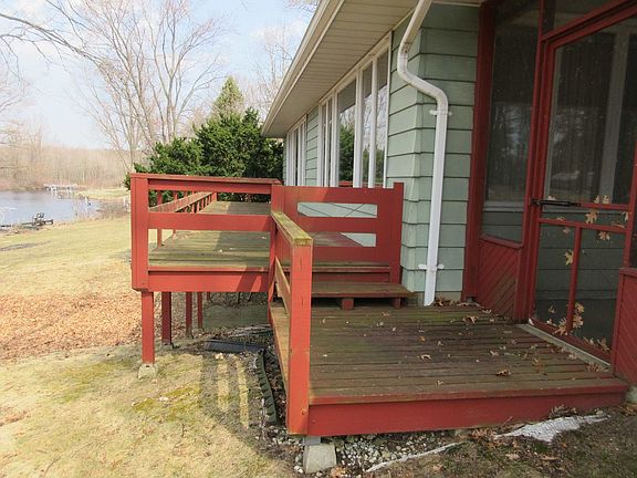 This is one you will want to see. Great view of Koontz Lake with 2 Lots for a total of 146 feet of water frontage. The house has over 1,700 square feet of living space with a full walkout basement. The main floor has 2 bedrooms, 2 baths, living room with limestone fireplace, large kitchen with open concept family room with water view. The 2 bedrooms have hardwood flooring. You could turn the formal living room into a 3rd bedroom if needed and have a view of the water. Nice deck on the water side of the dwelling plus a 14 X 24 screened porch. Good sized 22 X 26 attached 2 car garage. The extra lot is build able. The property has no exceptions and that is why taxes are high. Give me a call for a private showing.