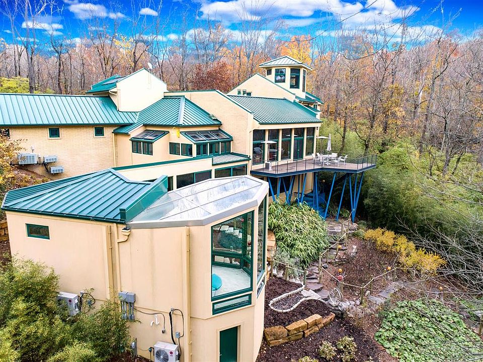 One of a kind, contemporary house sits on over 3 private acres. Eat in gourmet kitchen, LR with wall of windows overlooking spectacular view. Mbdrm with elevator access. LL has media room, exercise room, game room, indoor pool with changing room attached to indoor beach area. Temp controlled wine cellar. Gorgeous views from every room. Must See!