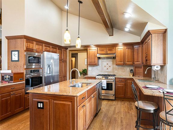This stunning estate in Heritage Greens backs to the prestigious South Suburban Golf Course boasting unobstructed mountain views from Pikes Peak to Longs Peak. This luxurious property is situated in one of the most sought-after neighborhoods in south Denver, providing the perfect combination of privacy and convenience. Unique in design, this multi-level home has 5 bedrooms and 7 bathrooms thoughtfully spread out over 5,482 finished square feet. Upon entry you will take note of the beautiful hardwood flooring, soaring ceilings, newly installed carpet, and expansive floor to ceiling windows that flood the home with natural light. The Chef inspired kitchen offers a convenient eat-in space, coffee bar, stainless steel appliances to include dual ovens, and a spacious center island with large single basin sink making cooking and cleaning a breeze! Warm granite countertops and charming cherry cabinetry offering plenty of storage provide the perfect blend of form and function. The primary suite with its own private floor is a sprawling sanctuary with a 5-piece spa like bathroom, walk-in closets, and a private maintenance free deck where you can enjoy your morning coffee or unwind as the sun sinks over the mountains. With two additional bedrooms and a full bath on the upper level, the layout is ideal for current or visiting extended family and friends. The lower level allows for easy walk-out access to your private fenced backyard oasis. The finished lower levels combine several areas perfect for entertaining. With two additional bedrooms and bathrooms, and a spacious game room and wet bar, the possibilities are endless.