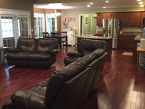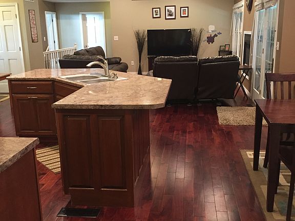This is an open concept house with hardwood floors through the kitchen, living room and master bedroom. The master bath has his and hers walk in closets and a whirlpool tub. There are 4 bedrooms plus an office. There is also a screened in back porch looking out in to the wooded area behind the house.