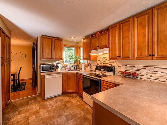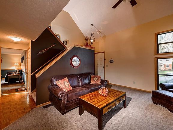 Freshly painted cedar-sided soft contemporary on a convenient North Canton cul-de-sac features two-story entry and great room with a corner wall of windows and gas fireplace. The living room opens to the dining room with hardwood floors and a decorator's niche. Beautifully remodeled kitchen with dovetailed, soft close cabinetry with a cognac finish, accent lighting, glass and stone tile backsplash, and a breakfast bar that overlooks the tiered deck. The kitchen opens into a spacious family room with chair rail and sliding glass doors to the large private deck with custom fencing, flagstone walkways, decorative grasses, and thoughtfully planned landscaping. Turn the staircase up to the second floor that overlooks the great room and you'll find a spacious master suite with ceiling fan, large walk-in closet and an en-suite that features a huge jetted tub, skylight, and walk-in shower. The two additional bedrooms have ceiling fans and double closets and share the second full bath upstairs. The two car attached garage has built-in shelving. There is additional shelving for storage in the basement along with a radon mitigation system, water softener system, tankless Bosch water heater, humidifier, newer furnace and AC. This home is beautifully maintained and easy to fall in love with!