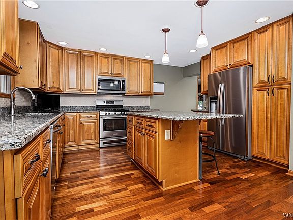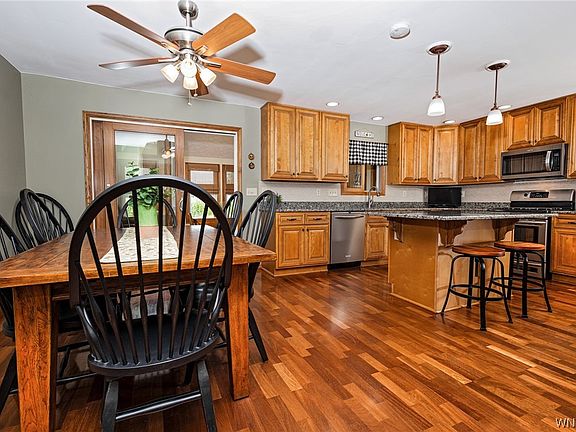 Absolutely beautiful and bigger than it looks! This Cape Cod style home boasts over 2300 sq.feet. Impeccably well maintained with 3 or possibly 4 bedrooms plus a bonus room and 2.5 baths. Desirable Oakfield-Alabama School District. Country living but just minutes from shopping and thruway. First floor master suite has private access to trex deck and heated above ground pool. The kitchen is spacious and gorgeous with maple cupboards to ceiling, granite counter tops, center island and s/s appliances. Off the kitchen are sliding glass doors to the very large heated sunroom where you can enjoy your country view. You will also find a first floor laundry, public water, breezeway from attached garage, 16x22 workshop, two stairways to basement plus outside Bilco doors, Split a/c systems '17, Navien combo boiler/tankless H/W newly installed march of this year with 5 zones, and radiant floor heat throughout house. Out back you will find a stamped concrete patio, 16x20 Amish built shed with metal roof, and beautiful landscaping all around. All of this situated on an acre lot. This is the home you have been looking for, move-in ready, no delayed negotiations, don't miss this one.