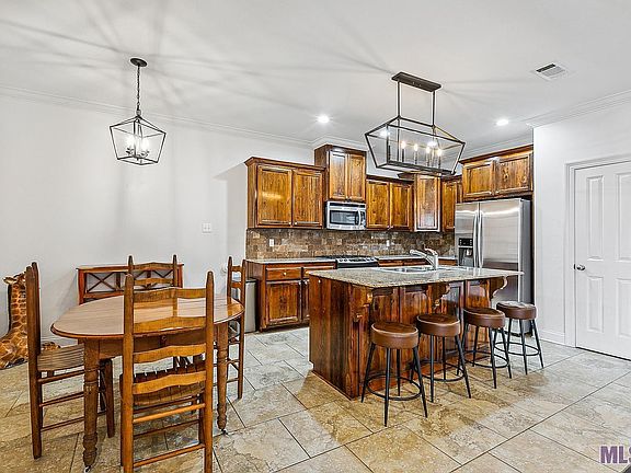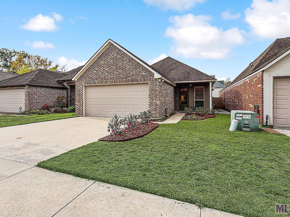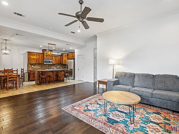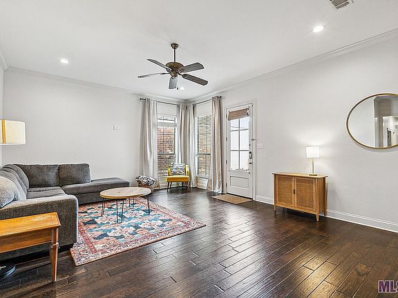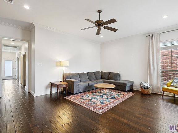 Beautiful 3 bedroom and 2 bath home in the gated University Villas neighborhood. Enter a welcoming wide open space with the kitchen, living room and breakfast area all connected. The kitchen features wood stained cabinets, granite countertops, eat in kitchen and stainless steel appliances. Tall ceilings and wood floors throughout the living room, hall and all bedrooms. The master ensuite has a bathroom with dual vanities, granite counters, jetted soaking tub, separate shower and walk in closet. Updated landscaping, covered back porch and great backyard. New Roof. Proximity to walking trail, lake, luxurious community pool and LSU.