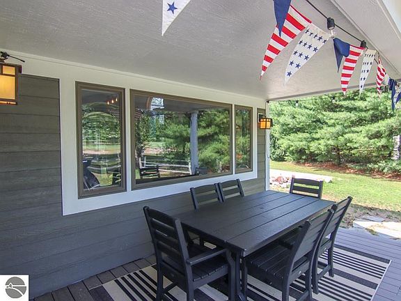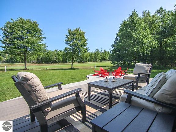 Charming cottage home overlooking the #8 fairway of the Betsie Valley golf course and views of the slopes at Crystal Mountain. This well maintained 4-bedroom, 3-bath home located within the Crystal Mountain Village community features a great room with a fieldstone gas fireplace, a hand-carved mantel, two main floor bedrooms, an upper bedroom master suite, a covered deck and screened porch. Recently updated luxury vinyl tile flooring throughout main floor. Spectacular kitchen with granite countertops, abundant cabinetry and stainless steel appliances. Gorgeous bathroom vanities, countertops, fixtures. Lower level family room, with expansive pool table area, a conforming bedroom and spectacular full bathroom. Irrigation system, new in 2023--shingles, Trex decking and a hardscape fire pit. Strong rental history, with many repeat guests between weeks enjoyed by the homeowners. Great home for year round or seasonal residence. Only a short walk, bike ride or shuttle bus trip to enjoy all that Crystal Mountain has to offer. This is your "base-camp" to enjoy Pure Michigan! Close to Lake Michigan and the Sleeping Bear Dunes National Lakeshore, world class trout streams, swimming, boating, fishing, canoeing, kayaking, tubing, etc. Seller will review offers on August 2 at 12pm.