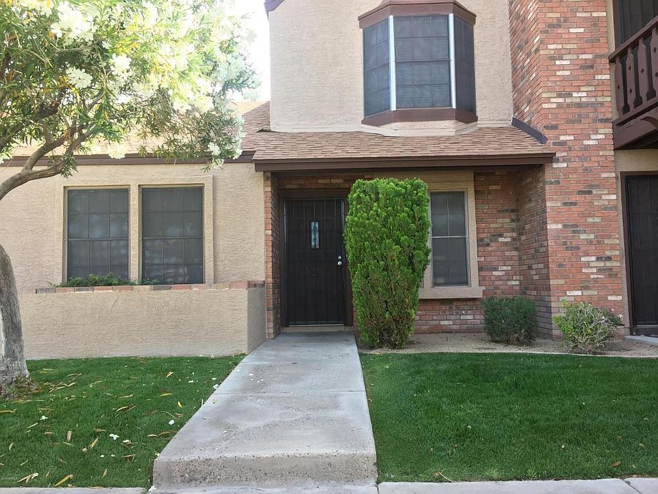 Cute 2 bedroom 1.5 bath townhome located minutes from shopping, baseball, football, and restaurants! Great room features wood burning fireplace with a bay window. Kitchen has a lot of cabinets and a breakfast bar. Stacked washer/dryer, refrigerator, and microwave convey. 2 nice size bedrooms up stairs, features vaulted ceilings and additional storage above closets. 1 bathroom upstairs and a 1/2 bath downstairs. Newer A/C unit. Separate storage off the back patio. grassy front, close to the pool & extra parking spaces! At this price, it won't last long.