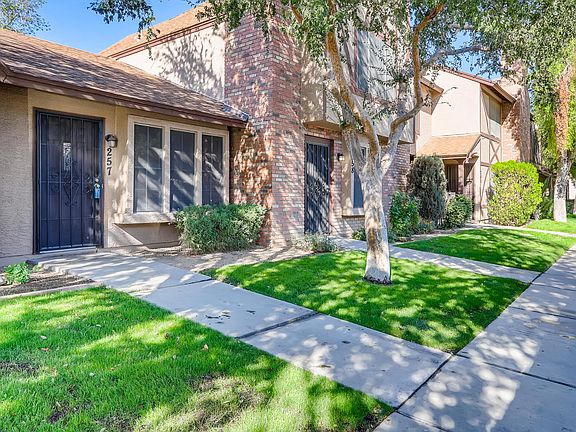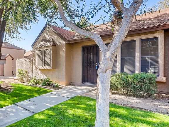 Owner/Agent. This townhome styled condo has 3 bedrooms plus a den and 2 bathrooms. The design is tri-level. The kitchen and family room (with fireplace) is on the ground level. Down several steps, there is a bedroom, bathroom and den. Up stairs, there are two more bedrooms and a bathroom. The downstairs bathroom has a walk in shower and the upstairs bathroom has a full tub/shower combo. Both bathrooms were remodeled. New carpet throughout all the bedrooms, family room and den. Parking is directly out front under a carport. Plenty of uncovered parking as well. The kitchen comes with Fridge, Microwave, Range and Dishwasher. Washer and Dryer are included as well. Private enclosed patio is accessible from the kitchen. Community pool. Close to Loop 101 and shopping.