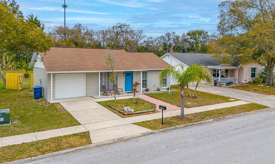 Nicely Refreshed 2 Bedroom 1 Bath 1 Car Garage Home Located in Seven Springs - New Port Richey. Start Out with a Brand-New Roof and HVAC Equipment! New Luxury Vinyl Plank Flooring Throughout Most of the Home with Plush New Carpet in the Bedrooms. Lots of New LED Lighting, Electrical and Plumbing Fixtures, Too. Enter the Front Door Into Your Surprisingly Spacious Living Room. Plenty of Natural Light Emanates From the Ceiling to Floor Front Windows. Notice The Chair Rails Throughout The Room. Your Dining Area Is Next and Features Sliders Leading Out To Your Back Yard. Step Outside Into Your Big Back Yard With Room for Gardening or Exercise, Partially Fenced For Privacy and Security, and Plenty of Room For a Pool! On to The Kitchen. Your New Kitchen Has LED Lighting and Shaker White Cabinets Featuring Slow Close Doors and Drawers; Attractive Granite Counters and Double Stainless-Steel Sink. And All New Stainless-Steel Appliances Featuring Frigidaire Refrigerator with Icemaker and Door Dispenser, Glass Top Range, Dishwasher, And Microwave Oven. You’ll Enjoy Two Nicely Sized Bedrooms With New Carpet and New Ceiling Fans. And An Attractive Full Bath Complete with a Gorgeous New Vanity, Beautiful Subway Bath and Shower Walls, and Modern Matching Hardware. Your Oversized Garage Has Added Room for Your Laundry and Storage and Your Car, too! Seven Springs Is Just Minutes to Highway 54 With a Host of Shopping and Dining Opportunities, including Mitchell Ranch Plaza for Shopping, and Golf at Seven Springs Golf and Country Club. Plus Several Parks Including a Short Drive to James E. Grey Preserve. See This Home Right Away!