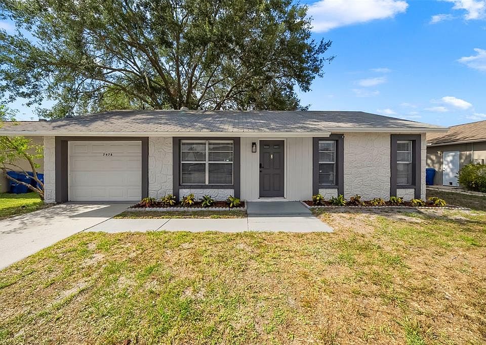 Step into your DREAM HOME! Nestled in the highly sought-after Seven Springs area of New Port Richey, FL, this enchanting concrete block residence has undergone a stunning RENOVATION, leaving it absolutely MOVE-IN READY. Prepare to be captivated as you step through the door and enter a contemporary haven, adorned with exquisite touches throughout. Indulge your culinary desires in the BRAND NEW kitchen, boasting sleek cabinets and state-of-the-art stainless steel appliances that beckon the inner chef in you. Feel the luxury beneath your feet as you walk on the NEW, stylish vinyl flooring that exudes elegance and warmth. The bathroom has been thoughtfully revamped, showcasing modern finishes and a chic stand-up shower, transforming it into a spa-like retreat. With NEW paint, doors, and baseboards, every inch of this home has been carefully crafted to perfection. This charming dwelling offers two bedrooms, plus an alluring FLEX space. Imagine the possibilities! This air-conditioned sanctuary, tucked away at the back of the house, allows you to customize your own personal oasis—be it a sophisticated home office, a cozy reading nook, or a creative workshop to bring your passions to life. Parking and storage are a breeze with the convenience of a one-car garage, ensuring your peace of mind and providing plenty of room for your belongings. Step outside and be welcomed by a generously sized yard, brimming with untapped potential. Design your very own outdoor paradise, tailored to your desires, whether it's lush landscaping, bountiful gardens, or a vibrant space to entertain guests under the Florida sun. Life in this prime location is simply unbeatable. Embrace the Florida lifestyle and soak in the abundant sunshine and delightful climate. This haven is conveniently situated, offering easy access to a wealth of amenities, including shopping centers, gourmet restaurants, and recreational facilities. Experience the tranquility of the Seven Springs area, all while being just a stone's throw away from everything you need. Seize the opportunity to make this fully renovated gem YOURS. Schedule a showing today, and let your imagination run wild as you envision the boundless possibilities that this extraordinary home holds. Your dream home awaits, and the time to make it a reality is now!