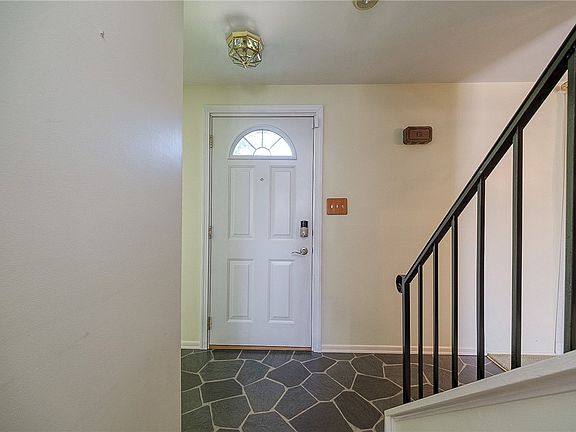 This 4 bedroom 1 full and 2 half bathroom home is perfectly situated on an expansive corner lot in North Allegheny School District. The main level features a slate floor entry way, hall powder room and sizable living room. A fully equipped kitchen offers a stainless steel fridge, dishwasher, wall oven and a large peninsula with an electric cooktop and room for counter stools on the breakfast area side. The breakfast nook is sunny and bright and walks out through the slider to a large composite deck with retractable awning over looking the level yard. A dining room is off the breakfast nook and Hardwood flooring is beneath the carpeting throughout the home! The second floor sports newer carpeting up the stairway and hall, a full hall bath, master bedroom with en suite half bath and three additional bedrooms. Laundry hook ups are located in the unfinished basement which walks out to a concrete patio in the back yard. Shed Conveys. Epoxy finished garage floor.