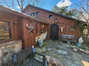 6 m/l acres of level/usable land on year-round Bear Creek with the coolest home ever! Talk about artistic, seller was an antique curator and this home is full of his carefully selected pieces from all over the world and spanning multiple centuries! This 2BR/2.5BA and office home is very spacious with approx 2379sf on the ground level and 693sf on the upper level that is open to the living room. Newly remodeled kitchen and dining with a hidden pantry that lies behind USS Minnow doors (yes, actually bought from the USS Minnow!!), another secret entrance into this magical pantry/cellar space is through an old antique chifforobe. The second refrigerator and a small freezer are located in here and will convey with the sale.