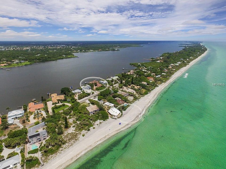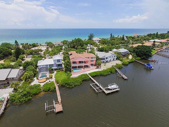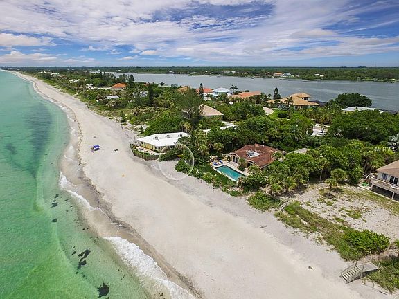 Extraordinary, luxury, waterfront estate home on Manasota Key with long bay/harbor views looking north/south, deeded Gulf of Mexico beach access across the road, all solid concrete construction-walls/floors, deep water sailboat dockage, 2 boat lifts, 6,849 sq ft of living space-12,441 total, 10+ car garages, 5 bedrooms, 4.5 baths, 2 kitchens & 3 laundry rooms. This custom Key West home features 109 ft. on the water, open concept design, soaring ceilings, separate guest wing, travertine flooring, spacious elevator, wheelchair accessible, high elevation, brick paver driveway & pool deck, 4 tiled lanais, whole house integrated 85KW generator, architectural windows, impact glass, 4 AC systems, specialty wood inlay, custom bar & tile roof. The dramatic chef's kitchens feature top of the line appliances, 6 burner gas range on 1st floor, 2 ice makers, custom counter tops and back splash. The 800 sq. ft. master bedroom, located on the 3rd floor has 2 private balconies with panoramic Intracoastal/Gulf views, en-suite master bathroom with jetted soaking tub, large walk in shower & dual sinks. Outdoor living is exceptional with large covered and open patios, heated pool & spa, with lush landscaping for total privacy. Manasota Key offers 7 miles of beach front, 4 pristine secluded beaches, world class fishing & is surrounded by luxurious homes nestled in dunes or privately tucked behind treed canopy. Experience a beach community that thrives on a laid back casual lifestyle and a wildlife sanctuary.