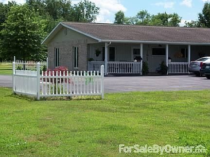Three bedrooms, 2 bathrooms Ranch-style home with attached 1-car garage located on 2 acres with stocked pond and an attached 1 bedroom apartment. Partially bricked home has a front and back porch and asphalt drive with ample parking. It includes 2 fireplaces, 2 utility rooms, den/work room, and large closets in master bedroom and master bath. House has central heat and air, some new carpet and countertops are only a year old. It is privately located on highway just outside of city limits on Rt 14.Additional property info: http://www.forsalebyowner.com/listing/3-bed-Other-property-for-sale-by-owner-7979-St-Rt-14-62832/23955524?provider_id=28079