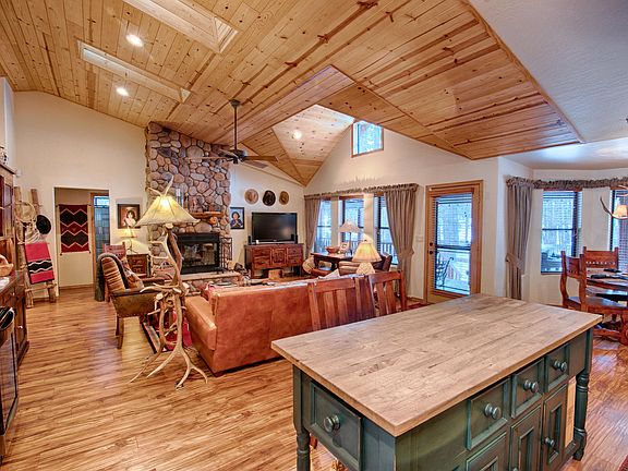 One of kind custom Log sided Cabin, built by Dean Allen. Remodeled and Ready for year round enjoyment. Single level and Immaculate ! 3 bedrooms plus a den or possible 4th (no closet) plus 2 full baths. Split Floor plan, New Wood floors throughout, Granite counters in Kitchen and bathrooms, New furnace and central ac in 2013. remodeled bathrooms, gourmet kitchen with gas viking stove, top of the line stainless steel appliances, vaulted T & G ceilings, Incredible landscaping with a regulation size bocce ball court,wood blinds, stone wood burning fireplace, covered front and back decks, metal roof, 2 car garage. walk to Jackson lake. close to national forest and hiking trails, close to golf and skiing. This is a must see cabin.