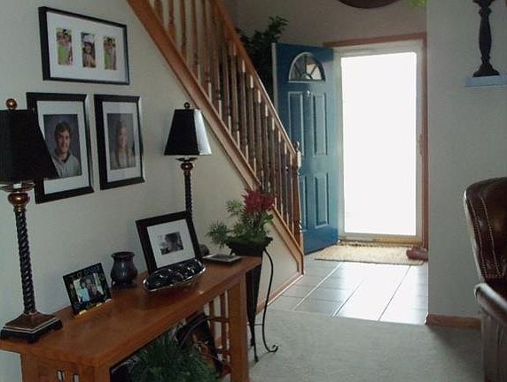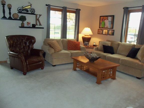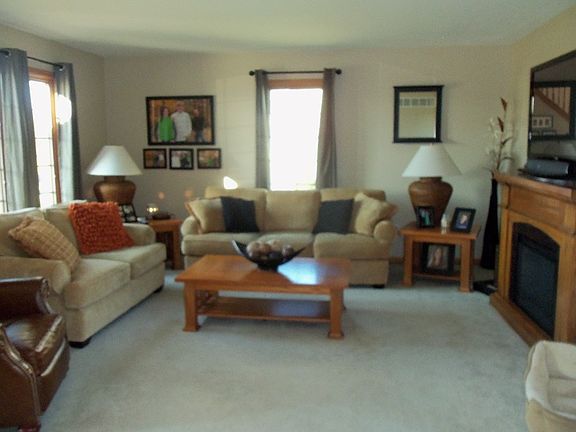 Indulge yourself in this quiet serene setting with a lake view throughout the year. Tastefully redone earth tone colors blend the décor with warmth and hominess. Recently painted - new door locks and hinges - new appliances - new window coverings and many lights. Open staircase to the upper level - gas fireplace in the great room and lower level family room - kitchen area with breakfast bar, all new appliances and slider to large back deck - main level laundry - upper huge master suite with room sized walk-in closet and large bath with double sinks, shower and Jacuzzi tub - 2 bedrooms in lower level plus full bath. Family room with fireplace and wet bar plus wine closet and walkout to large patio. Heated garage too! Large deck with steps to yard - fire pit area with concrete in place. Radon installed - 2013. Call to see this ideal place that can be yours! Reserved items: Washer/ Dryer - half bath mirror - yard art - bar stools - fireplace in great room.