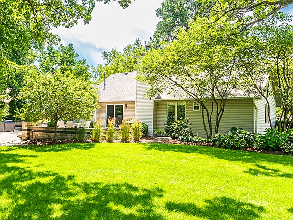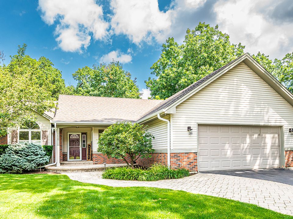 Immaculate ranch-style, split-bedroom design, dramatic pine cathedral ceilings; fireplace in living room, first floor laundry, breathtaking, private lighted patio/entertainment area, professional landscaping. Lower level is finished with huge rec room and bar, 3rd bathroom. . Attached 24' 20' garage, back yard storage shed. Beautiful mature trees provide the final touch of class. Updates: 2024: new stainless steel LG washing machine; 2013: remodeled kitchen, main level wood flooring. Four party well ($100/year), municipals sewer service. Silver Lake is 464 acres with all year 'round water/ice recreation. Winding Fox River offers more recreation opportunities. The Village is now part of Salem Lakes and retains the zip code of 53170 Walking path along north shore of Silver Lake.