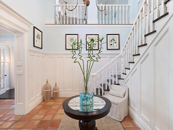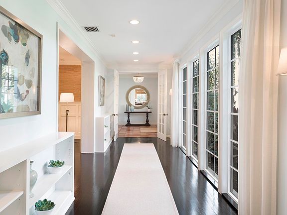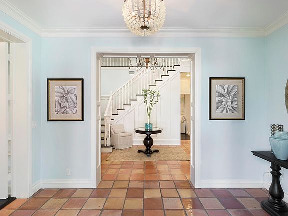 Poised on a choice gated corner lot, this recently renovated transitional estate is served by a wide circular drive in a mature tropical setting studded with canopy of old oak trees. The screened loggia and covered balconies - all with tongue-and-groove cypress ceilings overlook the glistening salt water heated pool encompassed by a St. Louis brick patio inviting outdoor entertaining area is served by a covered summer kitchen. Landscape lighting adds a dramatic night time effect.
