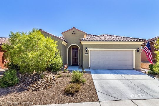 Come enjoy the Sun City lifestyle while enjoying the community pool AND the pool in your elevated backyard! You will love the freedom of having a sparkling pool with fabulous SE mountain views at your access 24/7. This lovely,move-in ready Sun City Preserve model has it all, including three bedrooms. You will love the open living design made for entertaining. This wonderful home as costly extended tile in the open living spaces. The fabulous kitchen with lovely granite, pretty cabinets, and a large walk-in pantry is every chef's dream. Your guests can relax at the executive granite island or join in the conversation from the large living area. The living area has a costly built in entertainment center with a fireplace and plenty of natural light. The connecting dining area has a beautiful built-in buffet. The recently painted primary bedroom area, with a bay window, is a great size. A glass barn door separates it from the en suite. You will love the tiled shower and dual sinks. The walk-in closet is very large. Need extra space for your toys? The garage, with an insulated door, is extended 2'. Bonus---SID is PAID!