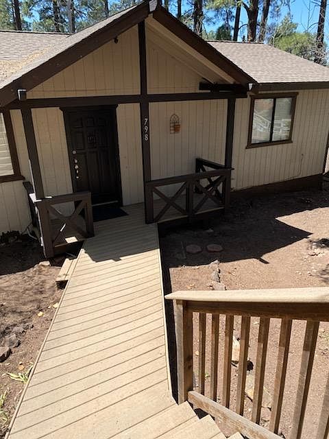 Bright and sunny 2 bdrm, 1 bath home in Mountainaire. Fresh paint throughout, new carpet in bedrooms, brand new appliances, new blinds, ceiling fans in living area and both bedrooms. Updated bathroom. Small storage area off of kitchen deck. Large fenced yard. Credit and background check required. Tenant pays all utilities: water, natural gas, electric. No smoking on the premises Parking for two cars 1 year lease
