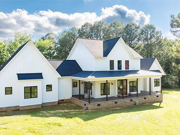 DREAMY KITCHEN is just one feature to boast about on this new to the market property. Built in 2023 with all the comforts of HOME in mind!! Nestled on 4.28 acres surrounded by trees, sits this beautifully crafted home with Hardy Board exterior, covered porches and outdoor fireplace. Step inside to an open concept affording an ample living area, dining space and a ONE OF A KIND DREAM KITCHEN!! White cabinets are the perfect backdrop to the champagne bronze accents, big chill blue island with quartz countertop, bay window, backsplash, three dishwasher's & a huge pantry. DS is 10' ceilings & 8' doors//4 bedrooms, three walkin closets, 3 1/2 baths, play room// storm shelter & a 40x40 pole barn.