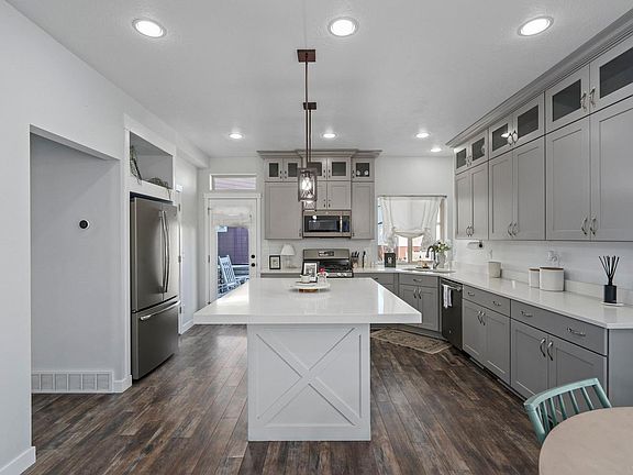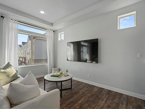 Beautifully painted cabinets extend to the ceiling for extra storage. Freshly painted walls, thick quartz countertops, gas range and more! This home is full of light with over 40 windows! All the windows in the bedrooms are covered by Plantation Shutters. 9 foot ceilings on the main level, which hosts the master suite. Off the kitchen is the large deck with beautiful views of the mountains, which is perfect for indoor-outdoor entertainment. The deck has stairs that lead to the private, fully fenced backyard. You are only minutes away from I-15, restaurants, movie theaters and all your entertainment needs! Minimum 1 year lease, renewable every year with an option to buy.