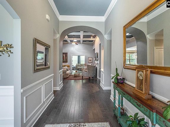 Incredible ranch plan on beautiful lot in prestigious Lake Carolina at Berkeley Shores. 4 side brick home with a sunroom and an extended (4 ft) garage and bonus room! When all of the bells and whistles matter, this is the home for you. Stunning foyer entrance with soaring ceilings and beautiful archway. Gorgeous formal dining room with nice butlers pantry area, open kitchen with huge island overlooks the great room with built-in cabinetry. The great room also has high coffered ceilings with sky lights. Very large master with gorgeous master bathroom and huge master closet. Split plan so all other bedrooms are on the opposite side of the home from the master. Gorgeous sunroom for those relaxing mornings drinking coffee and looking at nature. Gorgeous composite deck with solar powered lights and a beautiful black aluminum fence for the gorgeous and private backyard. Upstairs has an oversized bonus room with an additional full bathroom and 4th bedroom. Highly sought after floor plan, beautiful and private setting at the end of a cul de sac. Beautiful details with gorgeous flooring, paint, backsplash and everything else you would expect to find on a home far more expensive than this one, not to mention a gas cooktop with wall oven. Washer and dryer included with the home as well.