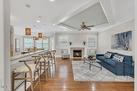 • Bathtub/Shower Combination, Ceiling Fan(s), Crown Molding, Double Vanity, Entrance Foyer, Granite Counters, Kitchen Island, Master Downstairs, Room Over Garage, Separate Shower, Tray Ceiling(s), Walk-In Closet(s), Walk-In Shower, Wet Bar