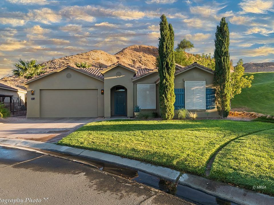 Situated at the community of Villa La Paz, this home gives you the perfect spot to relax and enjoy. Seller has added several upgrades which to name a few are the flooring and new paint. Situated next to Falcon Ridge Golf Course, you have the golf course atmosphere but not the constant golfers. You have the green, but don't have to mow. As you enter, you see the large great room and the kitchen with an Island, French Doors at the Great Room out to your perfect backyard patio. The Den has double doors with an additional door to the guest bath. The Main Bedroom and guest bedroom are separated by the living and kitchen so your guests have privacy when they visit. The Main Bathroom has a soak tub, and double sinks and great closet space. This community is beautiful with its Old Tuscan Style architecture with a common area if you want. You also have access to the Mesquite Vistas Community Center as well for Tennis, Swimming and Exercise.