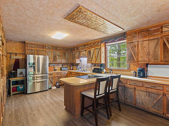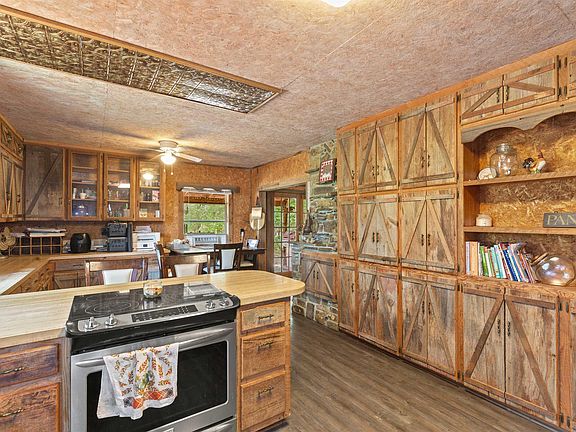Great Homestead Property for Sale in Arkansas The two bedroom home comes with 18.5 acres, large pond stocked with fish, several outbuildings, carports, small shop and more. There is lots of room for chickens and garden spots! The home has a covered balcony from the master bedroom upstairs and the kitchen has plenty of rustic style cabinets and has breakfast bar and dining area. This is the one!