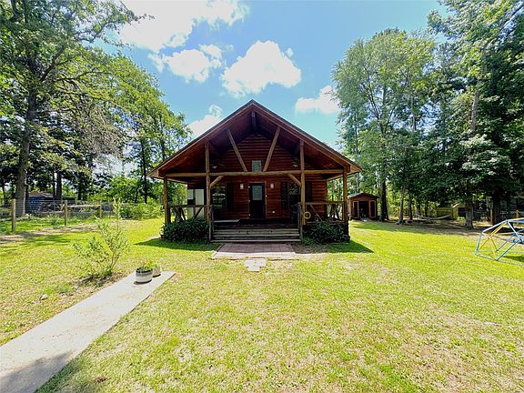 Adorable country cabin located on a large lot with no rear neighbors! Enter on grand front covered front porch, home opens to spacious living room open to dining and kitchen. Lots of space for entertaining and cooking. Primary and one other bedroom on first floor with beautifully upgraded bath. Second story with loft/game room space that could be used as a third bedroom. This property has so much yard to take advantage of, start your own garden and the privacy of all the tree behind your property! Storage shed on right of the house and the majority of the property is fenced besides the driveway. Whole house water filtration system installed.