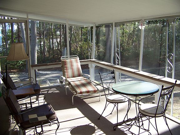 Screened Porch and Covered Deck!All contents included; Exposed beams in Living Room; built-in hutch; all appliances including washer and dryer; shingled roof; walk-in shower