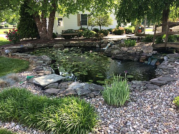CUSTOM BUILT RANCHER, Three first-floor bedrooms, 3 full baths. Basement has one large guest bedroom plus two offices and/or extra bedrooms and large rec room with fire place. Exterior Stone & vinyl siding with 3 tier fish pond, 5 waterfalls, bridge and pergola. 30 x 60 separate finished garage with 2 overhead doors perfect for auto storage or shop area.
