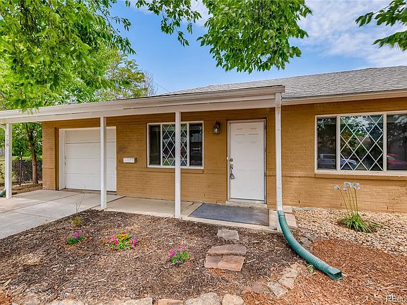 This charming 1953 ranch home in the Jewell Heights - Hoffman Heights neighborhood is situated on an oversized lot with 3 bedrooms and 2 bathrooms. This home has a master bedroom with large picture window letting in natural light and an ensuite full bathroom. The bathroom has an updated vanity, ceramic tile, and large soaker tub. There are 2 additional bedrooms and a full bathroom down the hall. Walking in you will find a spacious living area opening up to the dining room. Just off of the dining room is a sliding barn door leading you to the laundry room and garage entrance. Off the laundry room is a storage or workshop area with an exterior door to backyard. Off the dining room is an additional living space with windows and an exterior door to covered patio. The kitchen has updated cabinets and stainless steel appliances. Plenty of outdoor space and yard with .23 acres, fully fenced, shed, and a 20X11 covered patio! Great for entertaining! Convenient location with easy access to I-225 and 6th avenue, Buckley Air Force Base, Children's Hospital Anschutz Medical Campus. Less than a mile to Hoffman Park, Del Mar Family Aquatic Center and Park and close to many restaurants and shopping!