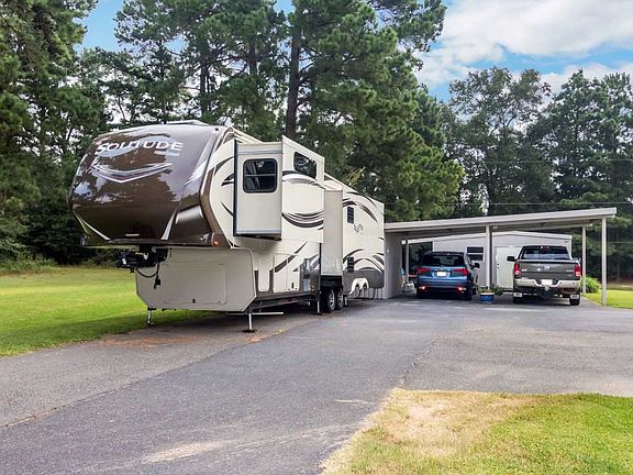 Country living at it's best! This property has 2 bedrooms/1.5 baths, a spacious living area, an outdoor patio, storage room, plenty of covered parking that sits on 2.4 acres and a pond with a newly built pier. Updates include a metal roof, AC system, granite countertops, and tile flooring. This great home is immaculate and move-in ready. Won't last long!