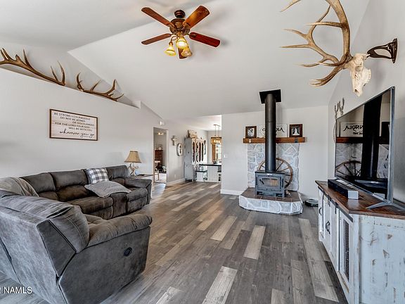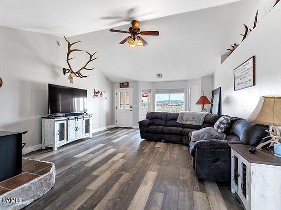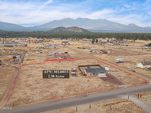Come take a look at this beautiful single level home in Doney Park. 1436 sqft of living space features a large family room and spacious kitchen. 3 bedrooms and 2 full bathrooms accompany this well taken care of home. Large primary bedroom boasts a spacious bathroom with a walk-in closet. Home has recently been updated with new floors, kitchen and tasteful bathrooms. Home is in a haul water area and has a 1500 gallon cistern tank. Amazing view of the San Francisco Peaks from the back patio! Stunning views with 2.38 acres of land to make your own dreams come true.