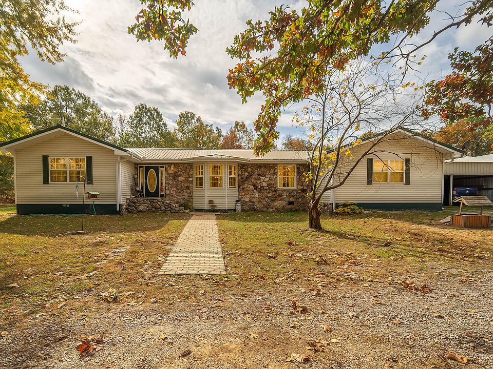 - Parking features: Circular Driveway, Covered, Garage Faces Front, Gravel