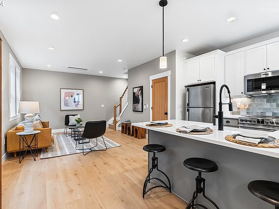 New Pocket Community on quiet street in Brentwood-Darlington! Incredible New Construction right next to Woodmere School w/great access to Woodstock, FoPo, I-205, MAX, & Clackamas Town Center Shopping. Thoughtfully designed & constructed w/attention to detail. Farmhouse style home w/open floor plan, HW floors, tile & quartz countertops. Kitchen features butcher block island w/eating bar, pantry, & professional SS appliances. Includes Refrigerator & W/D. Light & bright bedrooms feature vaulted ceilings, built-in safe, & stylish shiplap wall. Bike Score of 86! Energy efficient mini-split heating & A/C! HES=10! Low maintenance New Construction, just move in & enjoy!