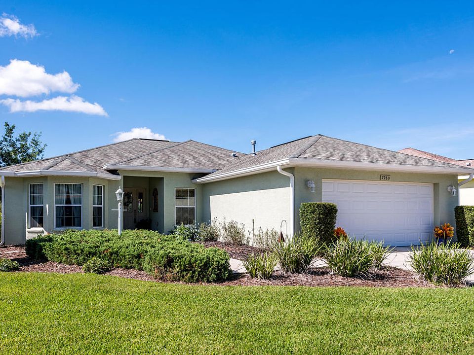 This irresistible 3 bedroom, 2 bathroom, 2 car garage Verbena with ''Oversized Premium'' lot is located in Indigo East! Recently updated laminate flooring in great room, kitchen and hallway. Tray ceilings in spacious master suite along with a soaker tub and a large walk-in shower. This home also features solar tubes and roughed in plumbing for sink in garage. Gorgeous open floor plan! All appliances stay. Open patio in back. A complete package! A lovely area, short drive to the heated community pool. Located in Ocala's premier, active 55+ community, loaded with amenities, including golf cart access to two shopping centers.