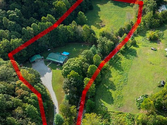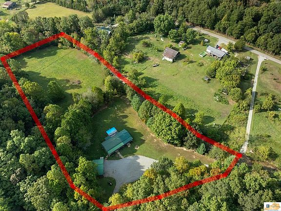7981 Breeding Rd. Edmonton KY Check out this cabin-style home sitting on 4 acres! Country charm at its finest-If you are looking for a country retreat check this one out!! Property boasts creek frontage, 2-acre pasture, wood burning stove, hot tub & pool and garage/shop! This 1652 sq. ft home has been updated and improved with the addition of a huge master suite. Enjoy country life from the covered front porch, which spans the entire front of house! Relax on the back deck and enjoy the views and the sounds of nature, with 450' of creek frontage. Property is improved with a 22x22 detached heated garage with carport. There are many custom updates inside this unique open-concept home. The kitchen has new countertops, kitchen bar, newer appliance package including dishwasher! The spacious family room has a cozy wood burning stove, built-in wall AC & a ventless propane heater. The split bedroom floor plan with the primary bedroom added in 2019, boasts a spacious custom walk-in tiled shower as well as huge walk-in closet, handmade sliding barn doors add an artistic touch. The home has LV flooring thru out, and the wood siding and rustic metal ceilings give this home country charm! The garage is ideal for a workshop with concrete floors, electric, propane HVAC heat, roll up garage door and 2 man doors, a carport and lean-to off the back; perfect for storing firewood! The partially fenced pasture is ready for new owners mini farm-cows, horses or sheep. Property is bounded by Flat Rock Creek on the North side and a small stream on the back side. This extremely private property is accessed thru a 30' Right of Way gravel drive and crossing the Creek. For added security and efficiency there is automated outdoor lighting with dimming features and LED bulbs! Heat source is wood burning stove and propane ventless wall heaters. Propane tank conveys with property. Storage building does not remain.