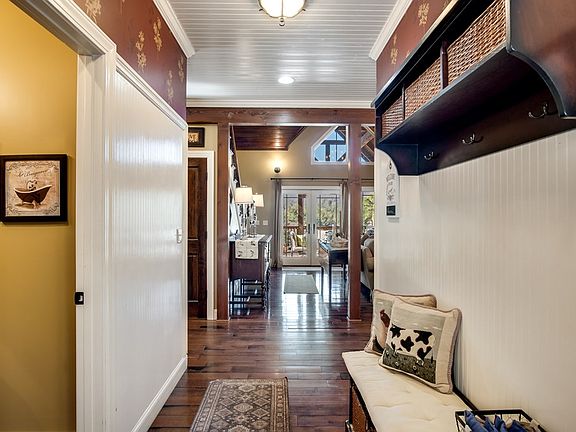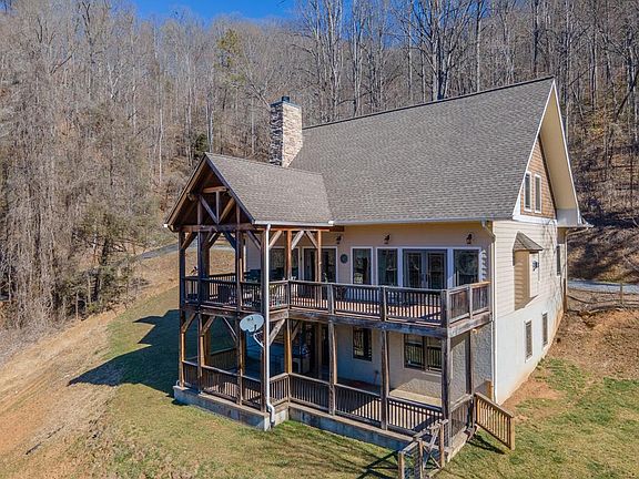 This custom builder-built 4 bedroom, 3.5 bath craftsman style home with bonus room and open living concept is privately situated on just over 3 acres of land across the road from the Tuckasegee River! Pull right up to the porte-cochere and step inside to soaring cathedral planked ceilings, three fireplaces and gorgeous hardwood flooring. Professionally decorated, the custom kitchen features a gas stove, custom cabinetry and raw edge granite countertops. The large primary ensuite features private access to the deck, a gas fireplace and a large bathroom with a tile shower. Upstairs are two bedrooms, a loft area and bathroom. Downstairs, you'll find a second living area, bedroom, bonus room and storage room. Spend the evenings taking in the views and entertaining on the large front covered deck. Conveniently located near the Tuck and three mountain lakes, you'll never be at a loss for things to do! Home has been on a vacation rental program since mid October and is performing great! Owner willing to sell vacation rental and future bookings or cancel bookings and sell as a primary residence. This is a portion of 7568-45-5763.