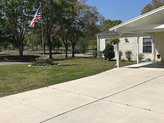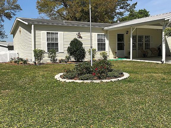 Lovely and impressive "Homes of Merit" home perfectly situated on a corner lot and conveniently located in the "Falls of Ocala". Open floorplan featuring wood burning fireplace in the living room along with cathedral ceilings and open view to the spacious kitchen. Bedrooms (3) are roomy and have walk in closets. Master bedroom includes private bath. All new appliances, lites, fans, flooring and window treatments. Laundry area inside and washer and dryer included. Freshly landscaped. Peaceful screened lanai with views of the waterfalls. All in all this property is beautifully maintained and it shows! HOA fee of $156 per month includes lawn maintenance, water/sewer. There is a community clubhouse and pool.
