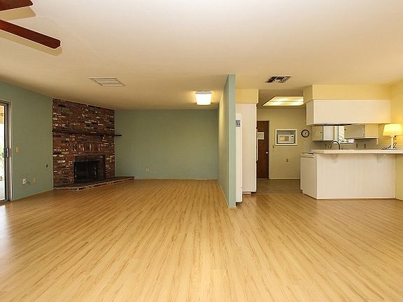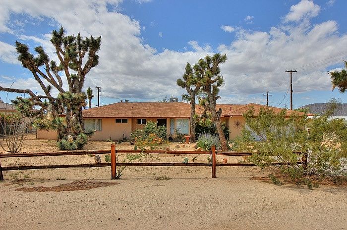 Charming 3 bedroom 2 bathroom with evap cooling, gas heating, fireplace, wood floorings and tile throughout with carpet in the bedrooms, 2 refrigerators, all appliances, centrally located within walking distance to Yucca Valley High School