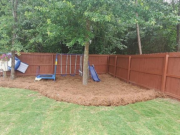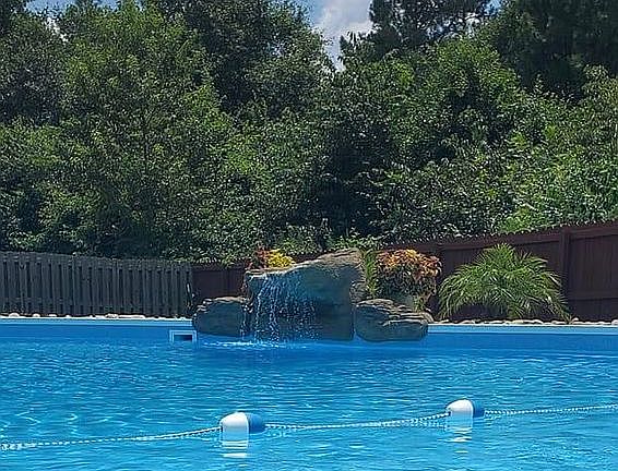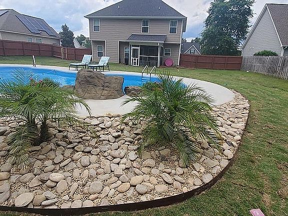 LIKE NEW! This immaculate 4 bedroom, 2 1/2 bath home is move in ready with new paint and new carpet. Wood cabinetry, an island, granite, stainless steel appliances and updated lighting make this kitchen a cooks dream. The beautiful floors are wood throughout the downstairs and carpet up along with ceramic tile and new vinyl. The owner's suite has an en suite bath, trey ceiling and large closet. The other three bedrooms are large and light with tons of closet space with new ceiling fans and lighting. Outside you will find covered front and back porches, the back is screened, a large privacy fenced back yard with a large salt water pool and waterfall. New irrigation system and French drains. 30 year architectural shingled roof. This beautiful like new construction home has too many extra features to list and is also in the beautiful Lakes and Streams subdivision with 8 lakes, 32 fountains, walking trails and a gated RV/boat parking area. You'll fall in love as soon as you walk in the door!