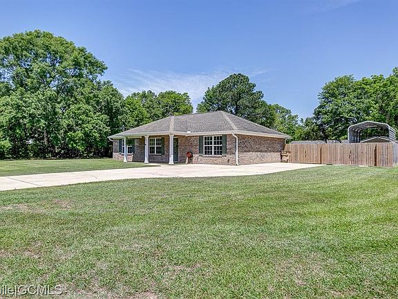 **VRM: SELLER WILL ENTERTAIN OFFERS BETWEEN $169,000 AND $189,000.** Beautiful home in West Mobile convenient to schools, shopping and the interstate! Don't miss the opportunity to own one of the most functional floorplans on the market! This fantastic home features a split floorplan, scored concrete flooring throughout and a corner lot that's just under half an acre! The kitchen stands out with its open concept, breakfast bar and stainless steel appliances. Each bedroom is well-sized with spacious closets. The master bath features a double vanity, an oversized closet and a jacuzzi tub shower combo. Out back you'll find a covered patio and a fenced yard perfect for entertaining and backyard barbeques. You'll also find a fully functioning, completely renovated workshop that's approximately 300 square feet with a roll up door as well as a boat/RV cover. The home also features fresh paint throughout (including the ceilings), new toilets and new custom cabinets in the laundry room! This house is immaculate and ready for a new owner! Call your favorite realtor today for your private showing!