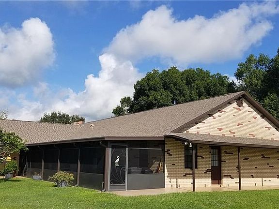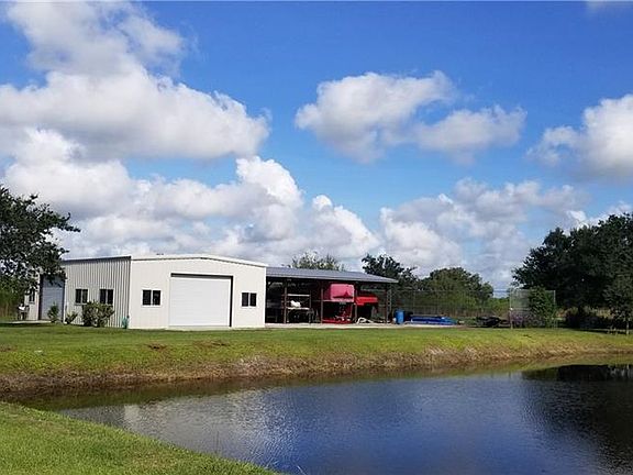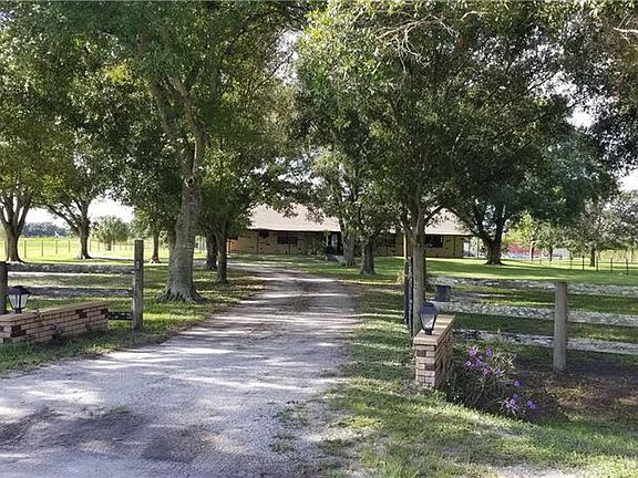 3250 sq ft 4 bedroom 2.5 bath custom concrete home on 6.4 acres in a beautiful, rural setting. Bring your horses! Entirely fenced with remote entry security gate, this property has many amenities; large screened lanai, mature shady oak trees, walk around porches, spacious game room and an office which could be used as a 5th bedroom. Many improvements to the property include Ply-Lock storm panels, dual a/c units for the main house and irrigation system. 30' x 50' insulated steel building with 100 amp electrical service, attached 30' x 50' pole barn with industrial steel roof. 12' x 20' stand alone cottage/cook house for entertaining with a deck overlooking the stocked fish pond. This fantastic property is ideal for a large family and is move in ready. Property is located inside the Sunset Strip Airpark, residents have access to the 5,000 ft licensed airstrip.