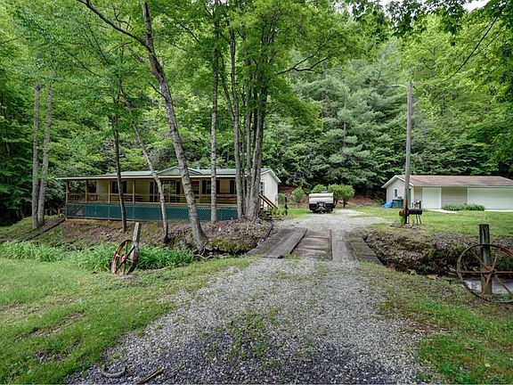 Enjoy Bold Creek Living in this Charming 2 Bedroom 2 Bath Home. This home is situated on 1.42 acres of Flat land with Alarka Creek running down the front of the entire property. Fish from your front porch or just listen to the creek go by while sitting on you brand new covered porch. This home also has a Huge oversized Garage for Cars and Toys. Light and Bright Large Living Room, Eat in Kitchen, and Gas Fireplace to keep you warm in the winter months. This would make a great Family home or a second home to get away from it all. Large Master Bedroom with a Large Bathroom with a nice size Garden Tub. Alarka Creek is Stocked by the County with Trout on the bridge adjoining this property, be the first to get your Fishing Pole out when you hear the Truck pull up! Several Fruit Trees and room for a Large Garden. Move in Ready.