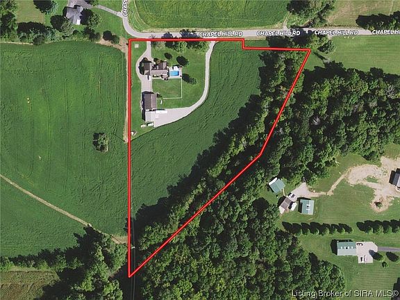 Extremely cozy & comfortable country living in highly desirable area of Borden, Floyd County!!! Properties with this amount of acreage in this area RARELY come available! Property features a 2-story country cottage-style, 4BR/4BA home on 6+/- acres far enough outside town for peace & quiet, yet close enough to get there in mins if need be! Also boasts a mostly finished walkout basement, 2-car attached garage, 2 large, metal-sided shops (1800 SF & 900 SF) both with HVAC (ideal for small business, car collectors, or man caves!), 880'+/- creek frontage (east property line), inground pool (needs new liner), small pool house, and 3+/- income-producing tillable acres! 50x36 shop includes office & full bath. Shops are currently used for woodworking. House interior features a large kitchen, LOTS of space, oak hardwood flooring, stainless steel matching appliances, JennAir countertop gas range, oak counters w/black stone tops, upper-level Jack & Jill bedrooms, separate HVAC units (x2 LP Amana furnaces) on each floor, & 2nd kitchenette & full bath in basement! House was built in 1977, but had a major addition in 1991. Walkout rear deck includes hot tub & power retractable awnings. This is the ultimate home for family, work, entertainment, and relaxation! Utility providers are Harrison REMC, Borden Tri-County Water, Mainstream FIOS internet, Rumpke Trash. The LP gas tank is owned and currently filled by Shelby County Co-op.